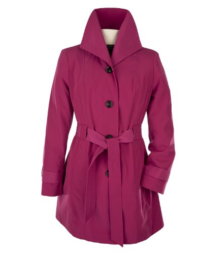 Give the rain a stylish run for its money in our Single Breasted Tie Front Rain Coat. Made by London Fog with a polyester shell and lining, this women's raincoat is crafted with durable black buttons on its front, and a belt for an adjustable fit. A back vent allows free air movement, and front seam pockets are ideal for essentials. Machine wash and dry. Colors: Fuchsia. Black. * 100% polyester * Machine wash and dry or Dry Clean * Fully Lined * Water resistant * Imported * Color: Fuchsia. Black * Sizes: S M L XL * Approx. length 34''